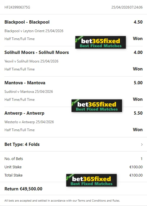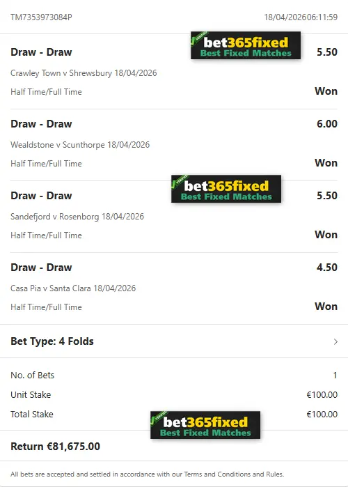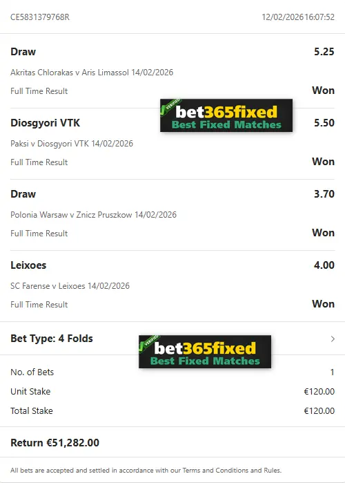 If you’re looking for more favorable odds than our free matches provide and want to secure immediate profit, our Combo VIP Fixed Matches tickets are the perfect solution. Our knowledgeable betting experts craft these tickets to ensure your success. You can purchase next weekend’s VIP Fixed Matches tickets here! We guarantee your profit and success with our 100% reliable fixed games. Contact us now to buy your next fixed matches!