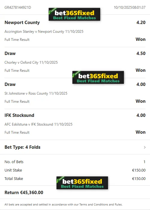 If you’re looking for more favorable odds than our free matches provide and want to secure immediate profit, our Combo VIP Fixed Matches tickets are the perfect solution. Our knowledgeable betting experts craft these tickets to ensure your success. You can purchase next weekend’s VIP Fixed Matches tickets here! We guarantee your profit and success with our 100% reliable fixed games. Contact us now to buy your next fixed matches!